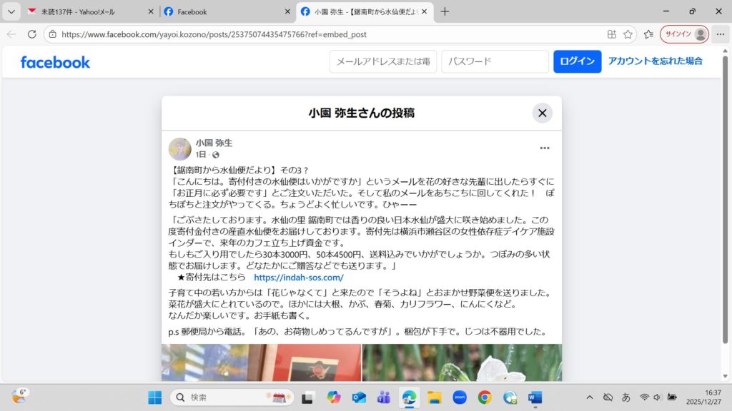 Indah寄付つき水仙のご案内
